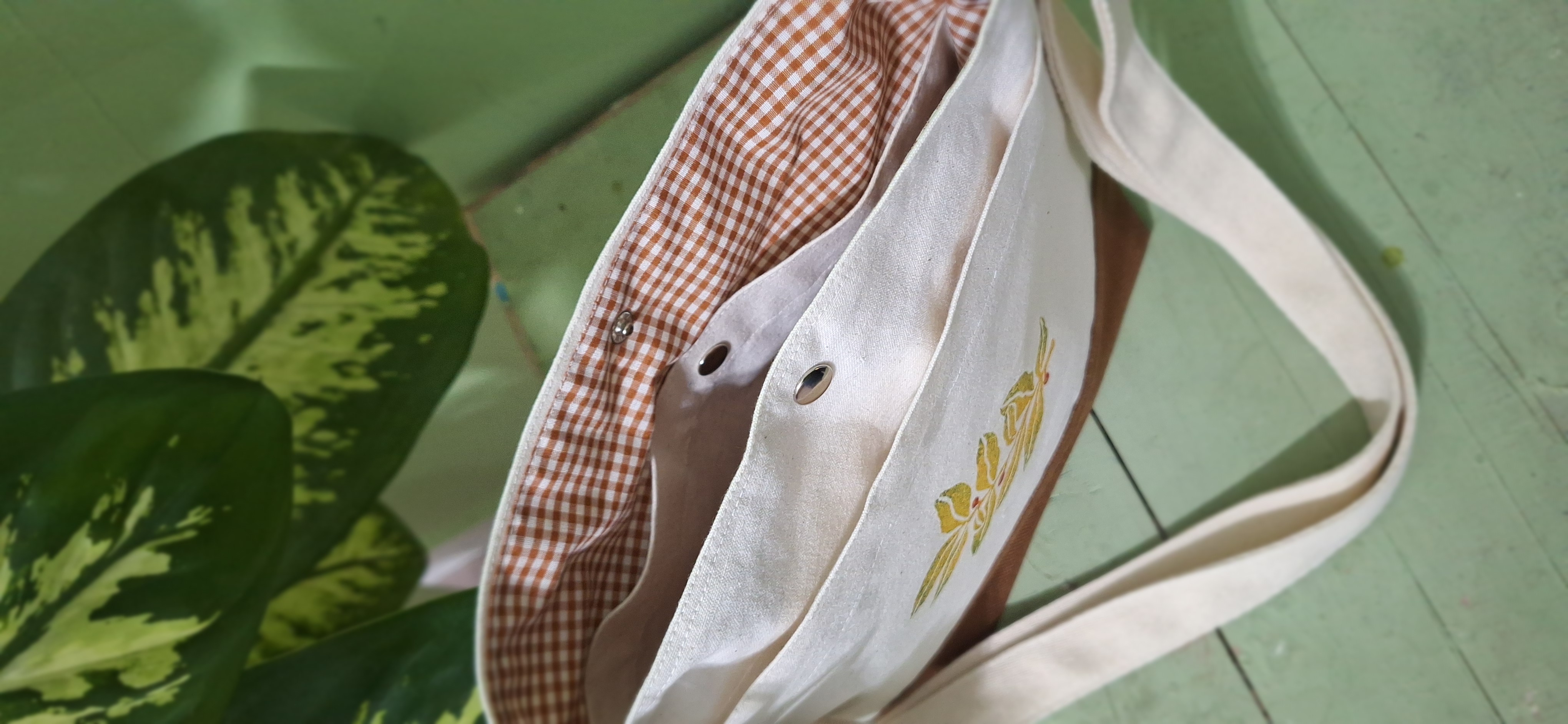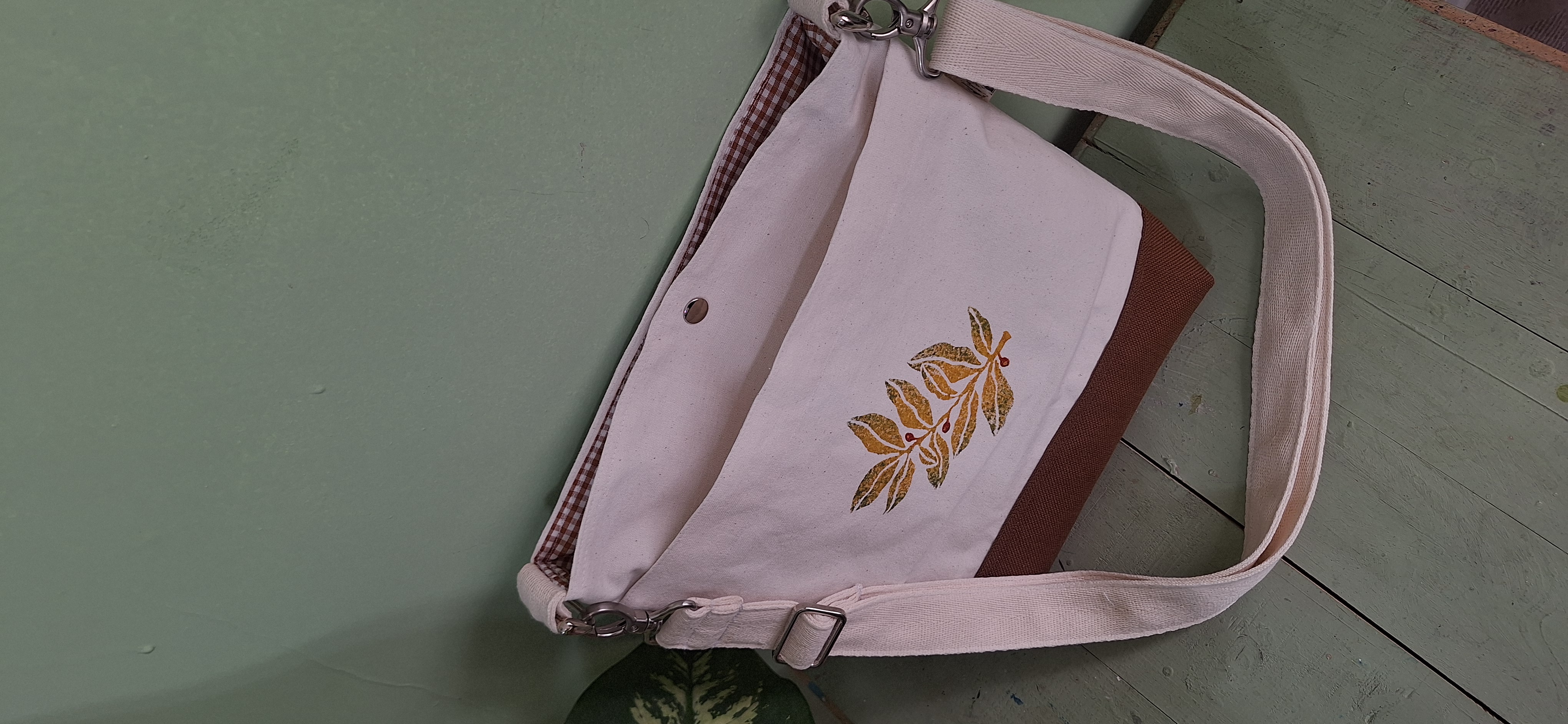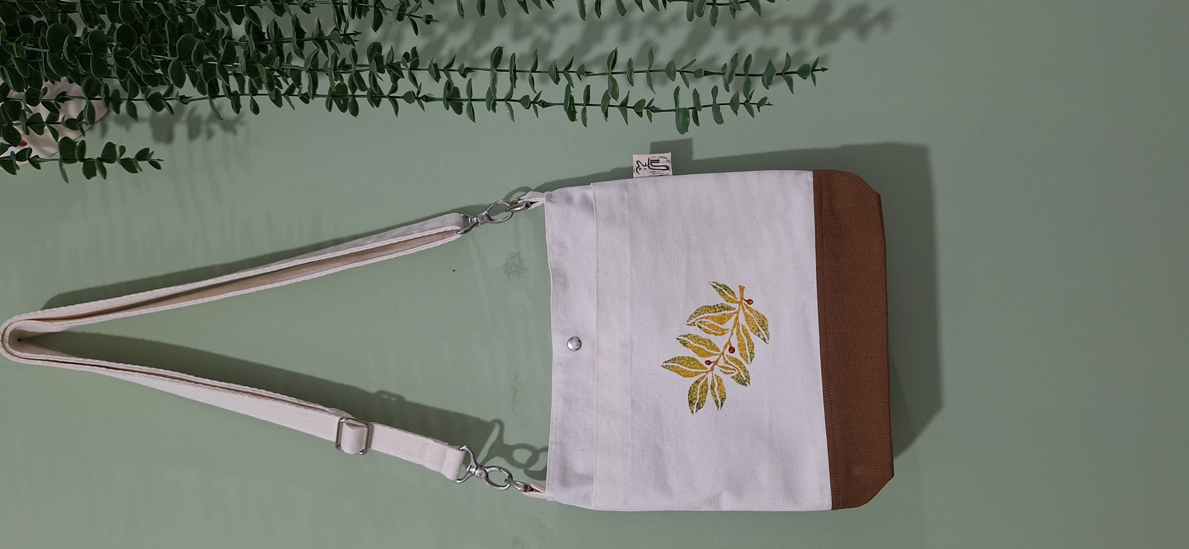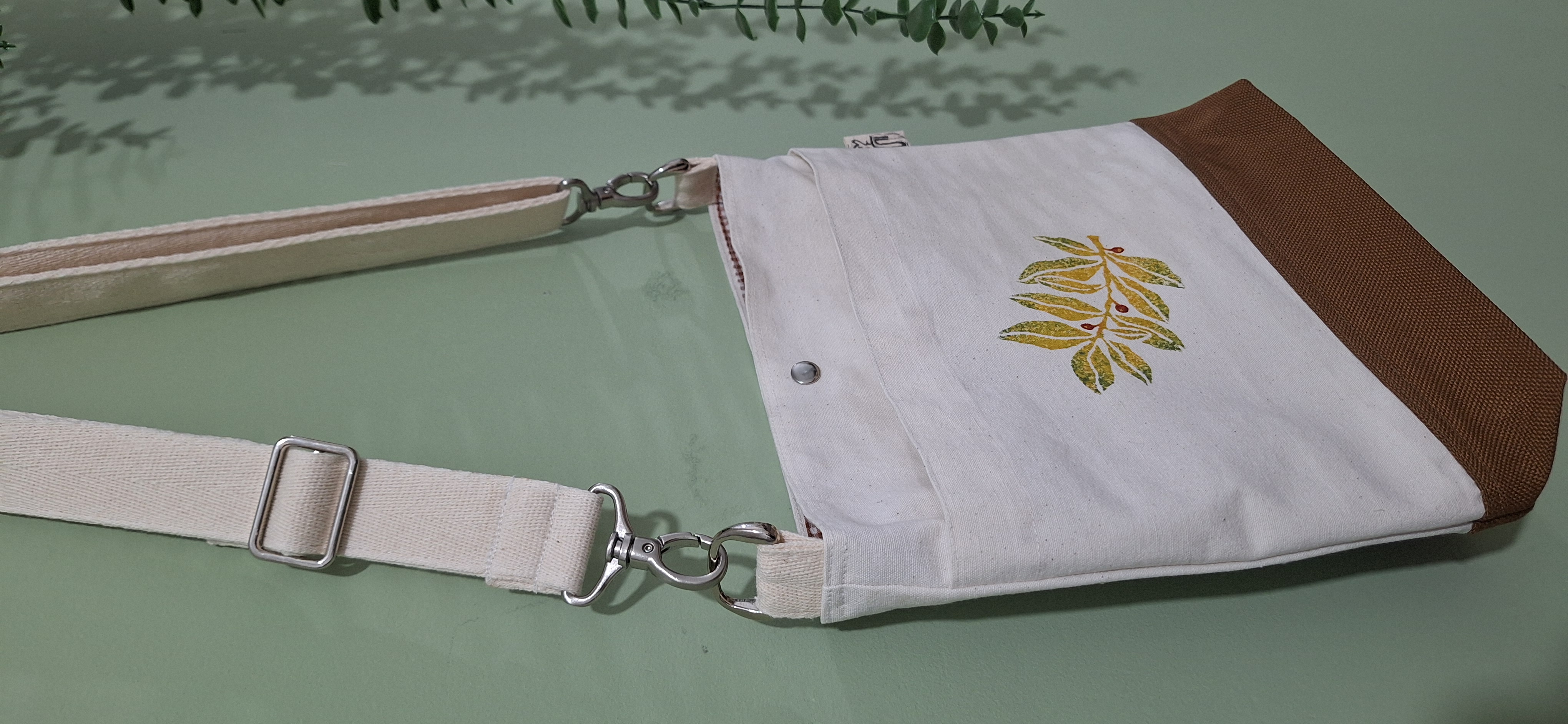 ساک پارچه ای طرح برگ از جنس نخ پنبه به بند قابل تنظیم . رنگ کفی کیف قابل تغییر است با رنگ های سبز یشمی،قهوه ای،مشکی،نسکافه ای،سرمه ای