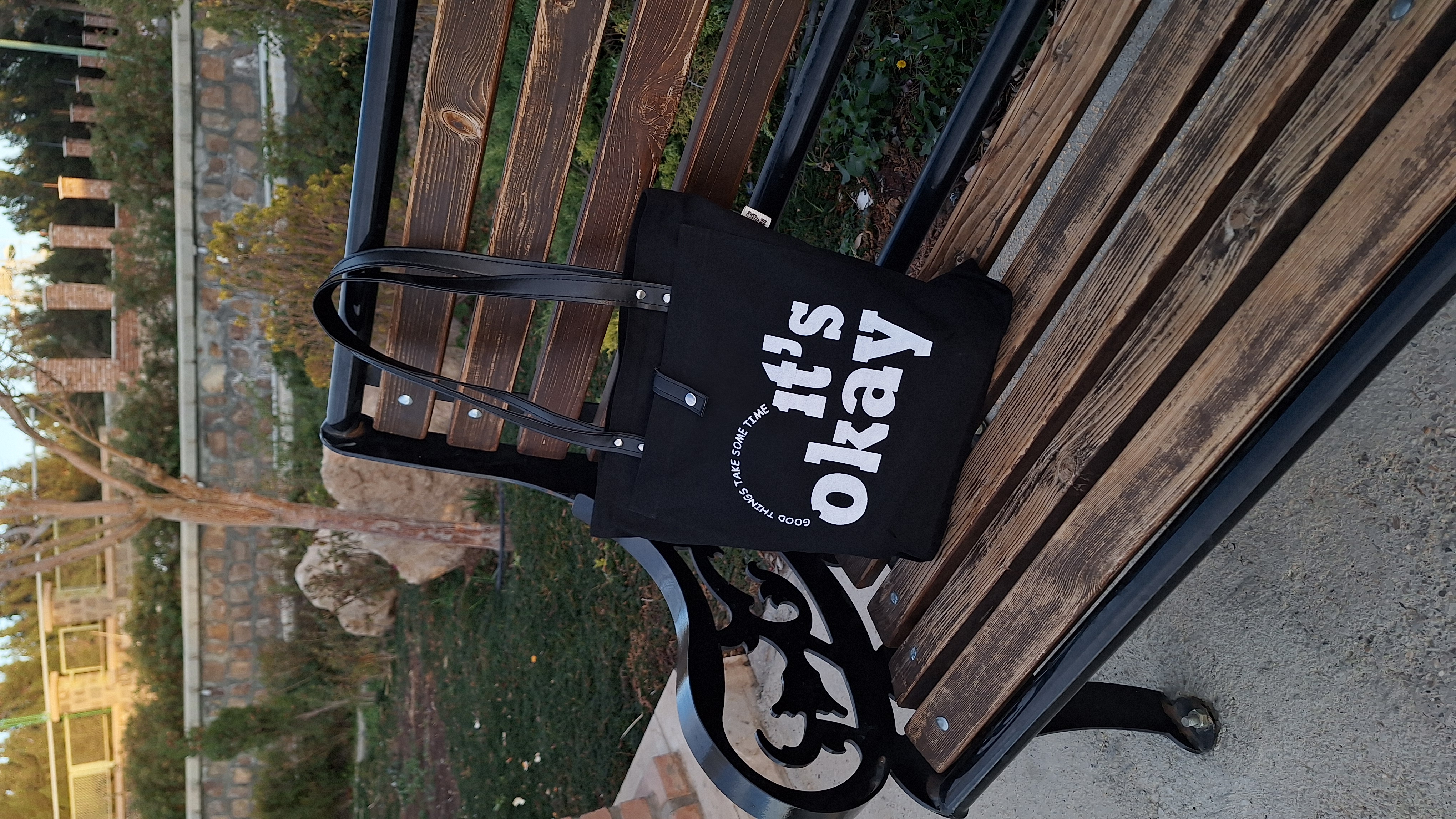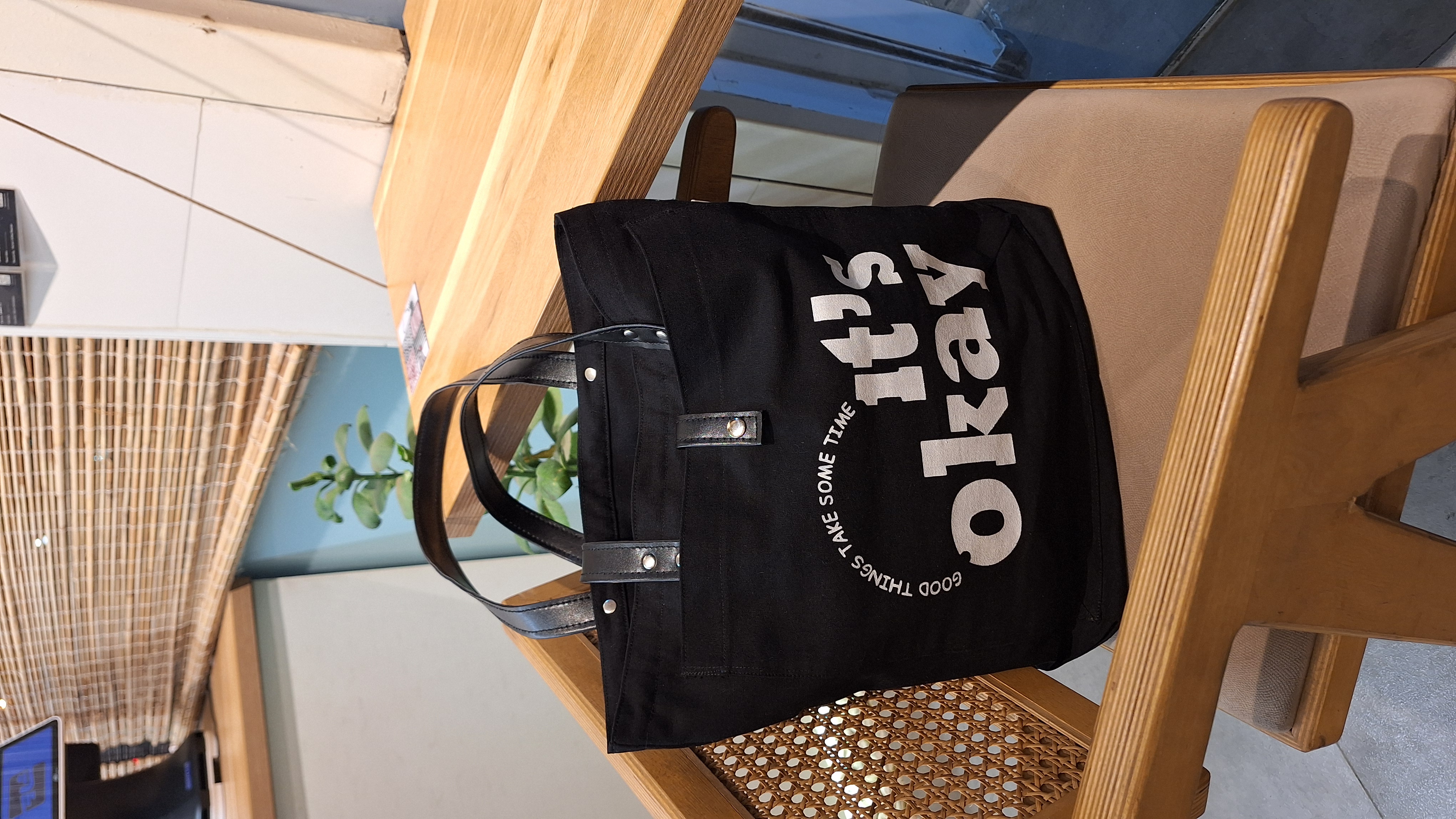 توتبگ کتان مشکی ضخیم جیب دار طرح نوشتار،برند گلیچ