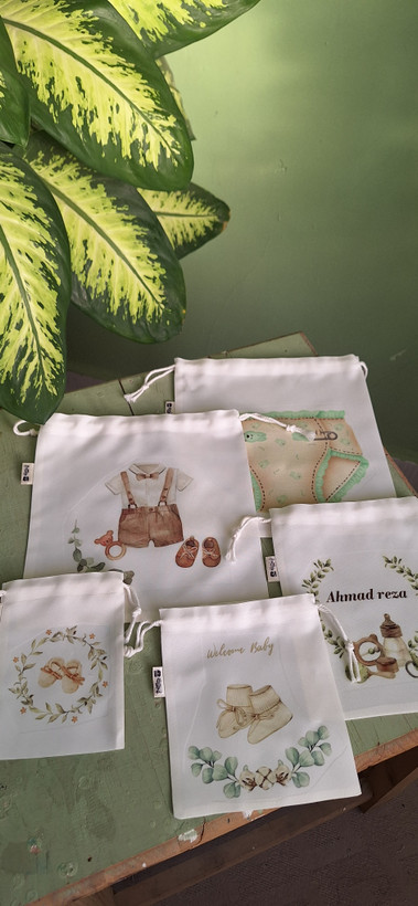 بگ های مخصوص حمل وسایل نوزاد شامل:بگ شیشه شیر و پستانک،بگ کفش و جوراب،بگ لباس،بگ پوشک و قابل سفارش در سایز های مختلف.برای سفارش سایز ها به آیدی اینستاگرام پیام دهید.